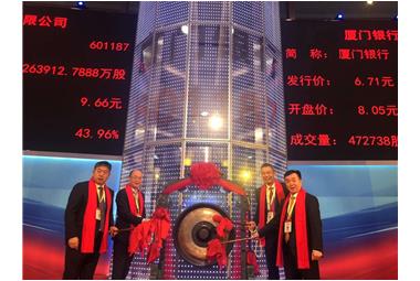 10月27日,大洲集團(tuán)參股企業(yè)——廈門銀行股份有限公司(股票代碼:601187)在上海證券交易所掛牌上市!集團(tuán)董事長(zhǎng)陳鐵銘先生應(yīng)邀蒞臨現(xiàn)場(chǎng)與眾股東代表一同敲響上市鑼音!